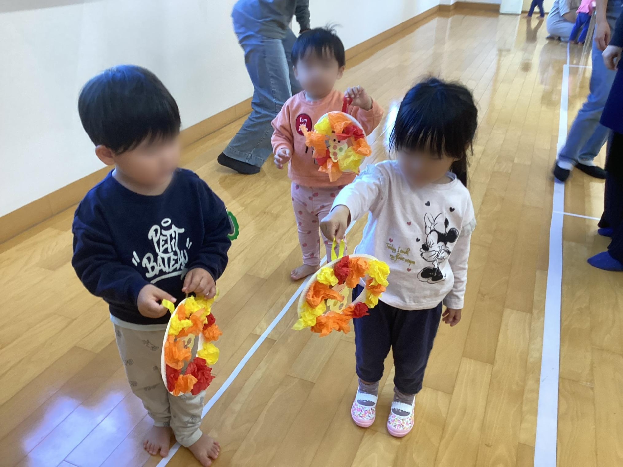 お母さんや先生と体を動かしたり、製作をしたりして楽しみました🎵
