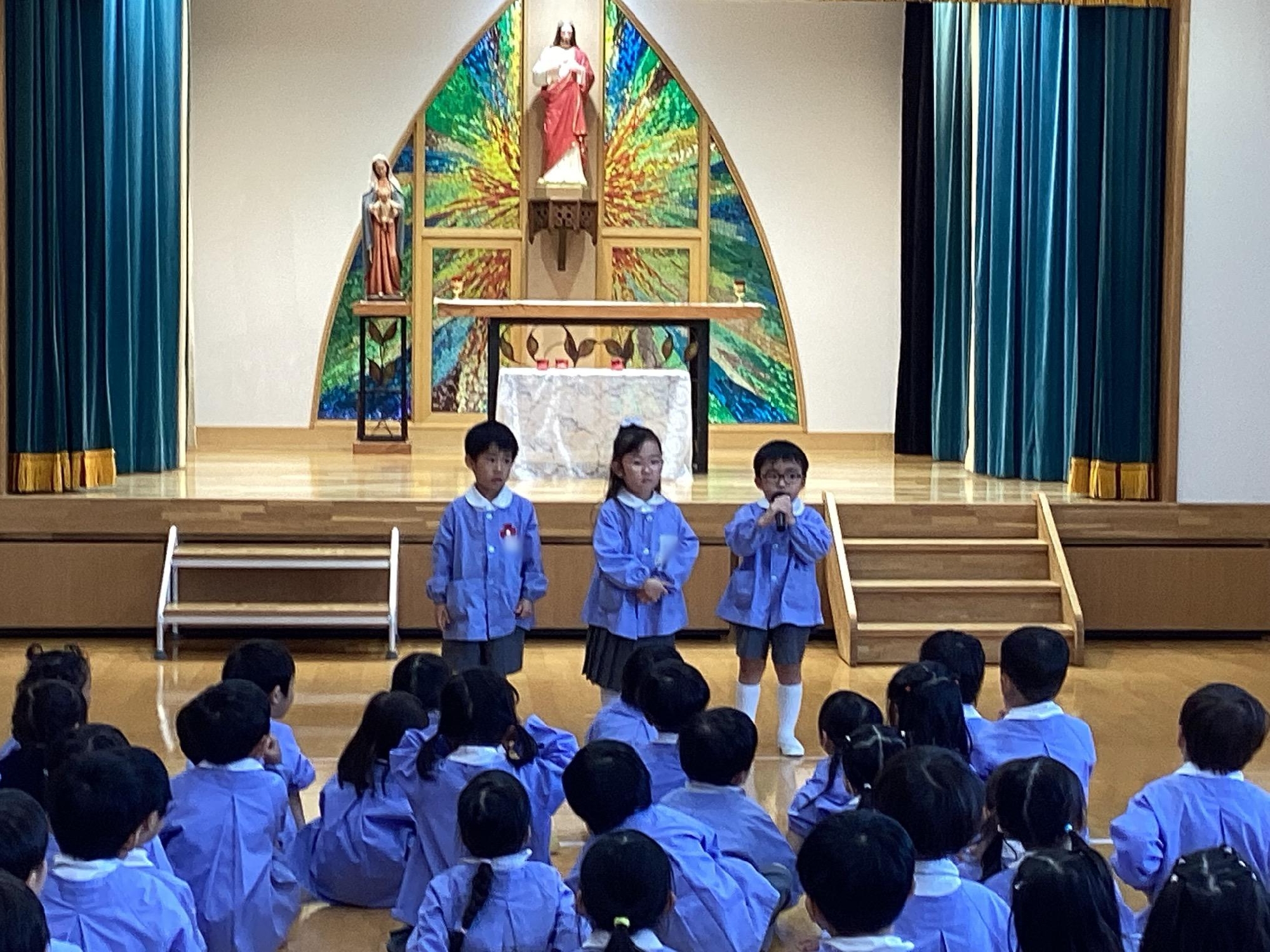 徳山カトリック教会で七五三祝福式を行いました。