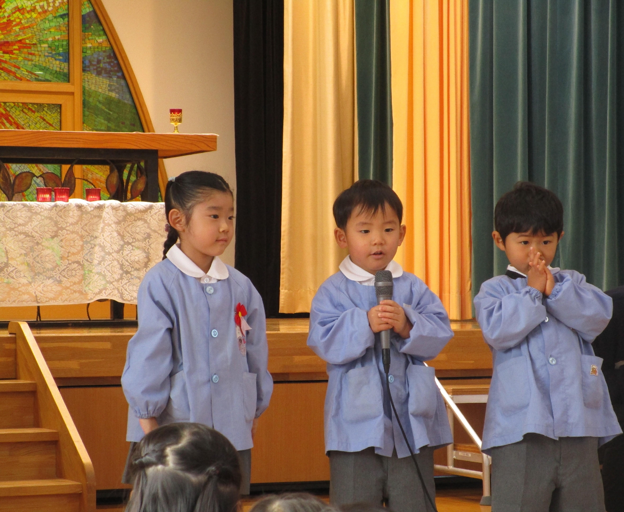 たくさんのお兄さんお姉さんの前での自己紹介は、とても緊張した様子でした。