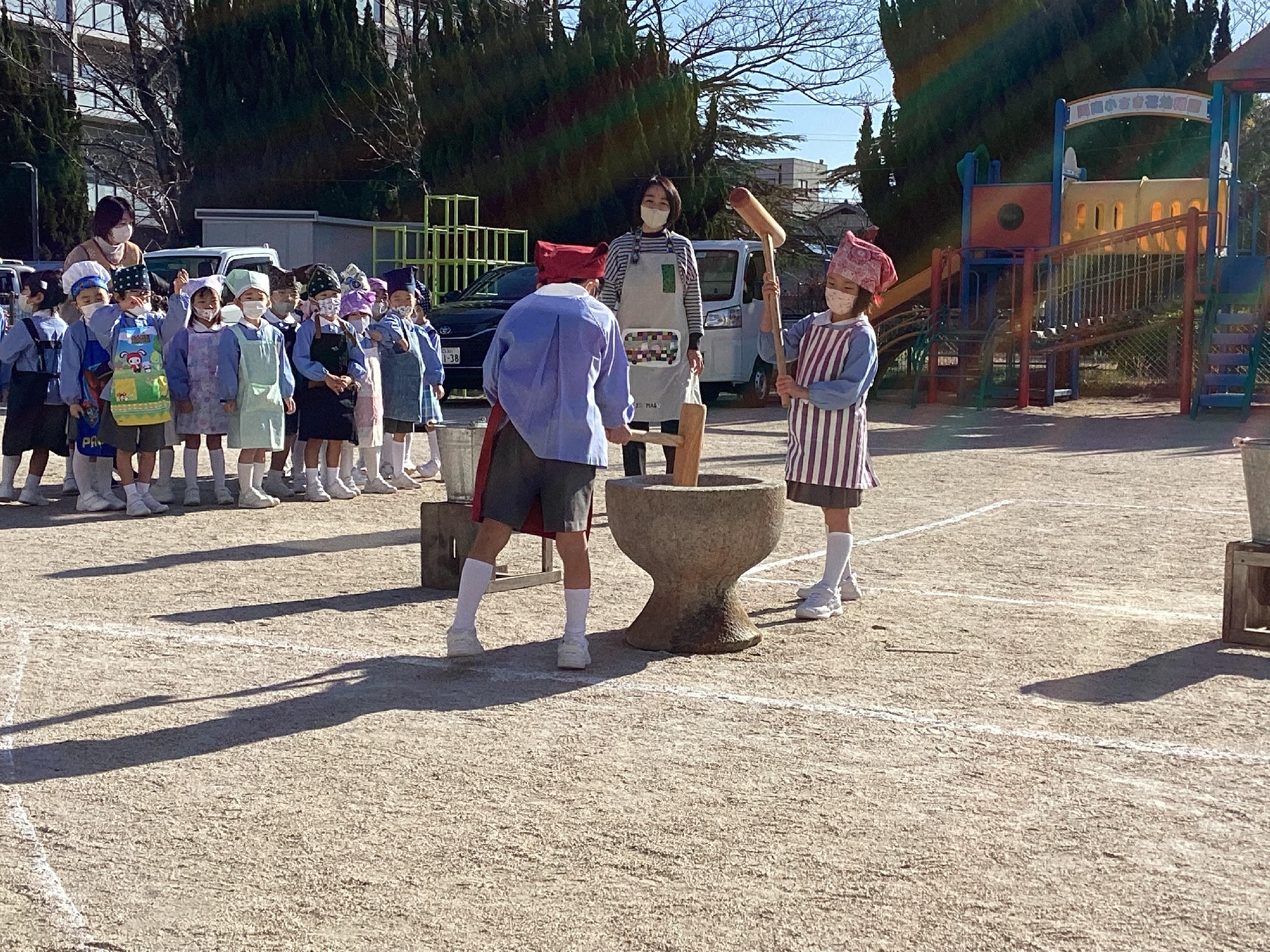 1月14日、今年も大田原自然の家の方々に来ていただいておもちつきをしました。